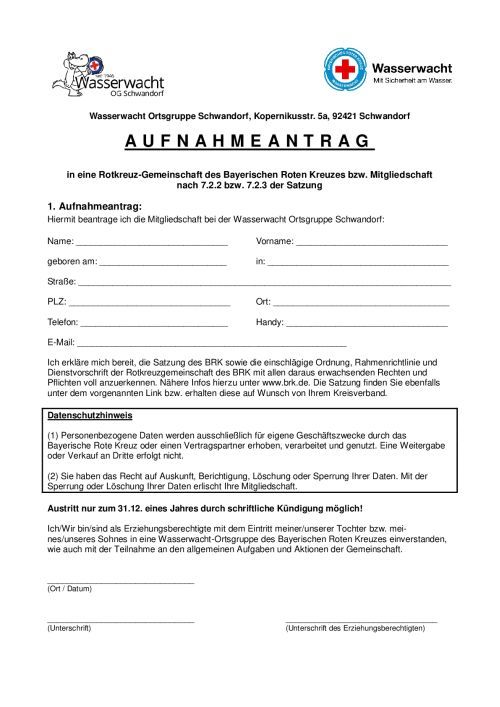 Einfach den Aufnahmeantrag ausfüllen und uns per Mail zurückschicken. Oder auch